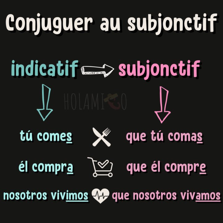 Le verbe querer doit être conjugué au présent du subjonctif (alors qu’en français on utilise le présent de l’indicatif). Je vais donc en profiter pour te faire un petit rappel de la conjugaison du subjonctif en espagnol 🤓 (promis ce sera rapide !)…