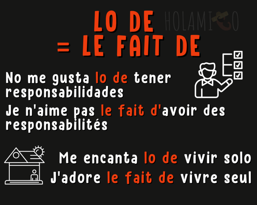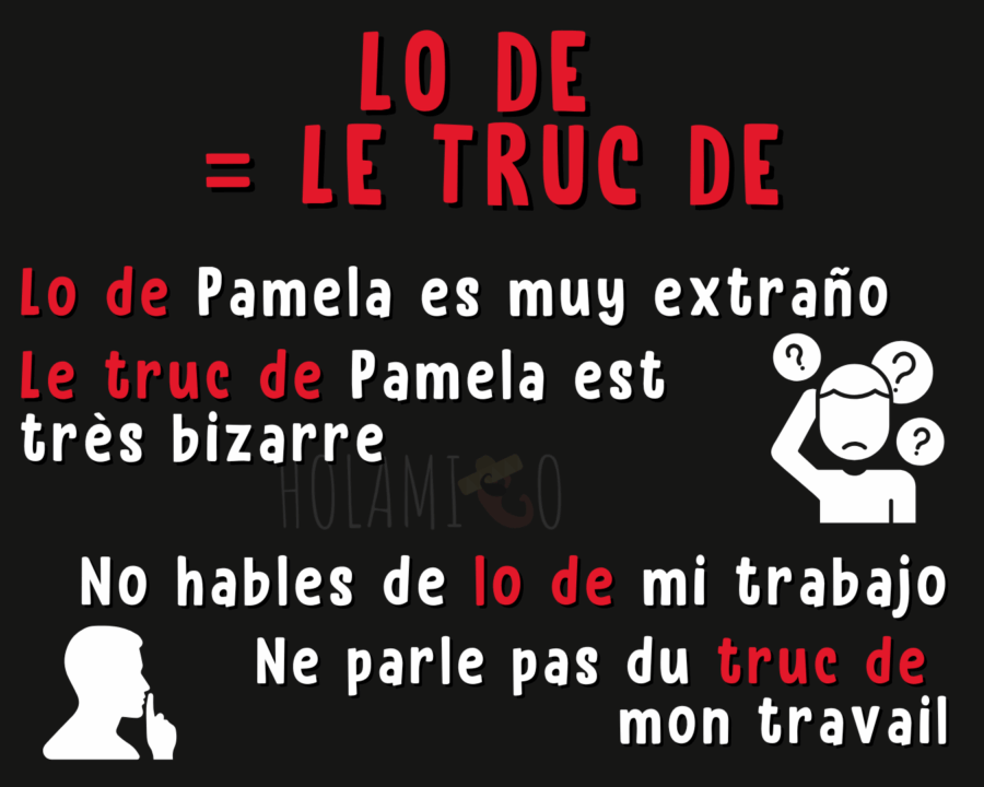 En espagnol, l’expression LO de + chose sert à parler d’un objet, d’un événement ou d’une situation de manière générale, un peu comme « le truc de … » en français.