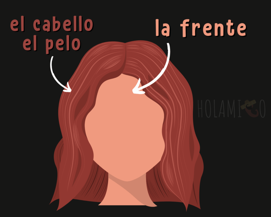 Une grande partie de la tête est recouverte de cheveux, ce qui se traduit en espagnol par el cabello / el pelo. Tu rencontreras plus souvent el pelo dans la langue de tous les jours, tandis que el cabello est un peu plus formel ou poétique.